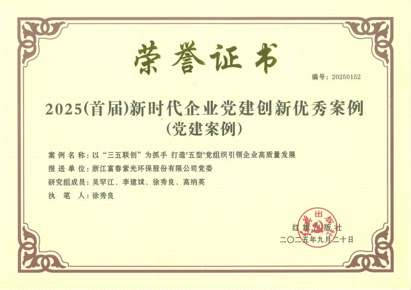 浙江富春紫光環(huán)保股份有限公司(以下簡稱“紫光環(huán)保”)成立于2000年9月,是一家集水庫原水、市政供水、城鎮(zhèn)污水處理、工業(yè)廢水處理、農(nóng)村污水治理、污泥處置、管網(wǎng)建設與維護、河道生態(tài)治理為一體的綜合型環(huán)保企業(yè),注冊資本77139萬元,是浙江省屬國有企業(yè)杭州鋼鐵集團有限公司節(jié)能環(huán)保板塊核心成員(上市平臺為浙江菲達環(huán)保股份有限公司600526.SH),浙江省綜合實力最強的水環(huán)境綜合治理龍頭企業(yè),國家高新技術企業(yè)。先后獲得“浙江省五一勞動獎狀”“全國工人先鋒號”“中國水業(yè)最具成長性工程公司”“中國水業(yè)十大優(yōu)秀工程技術公司”等榮譽,連續(xù)多年信用等級被評定為AAA級。